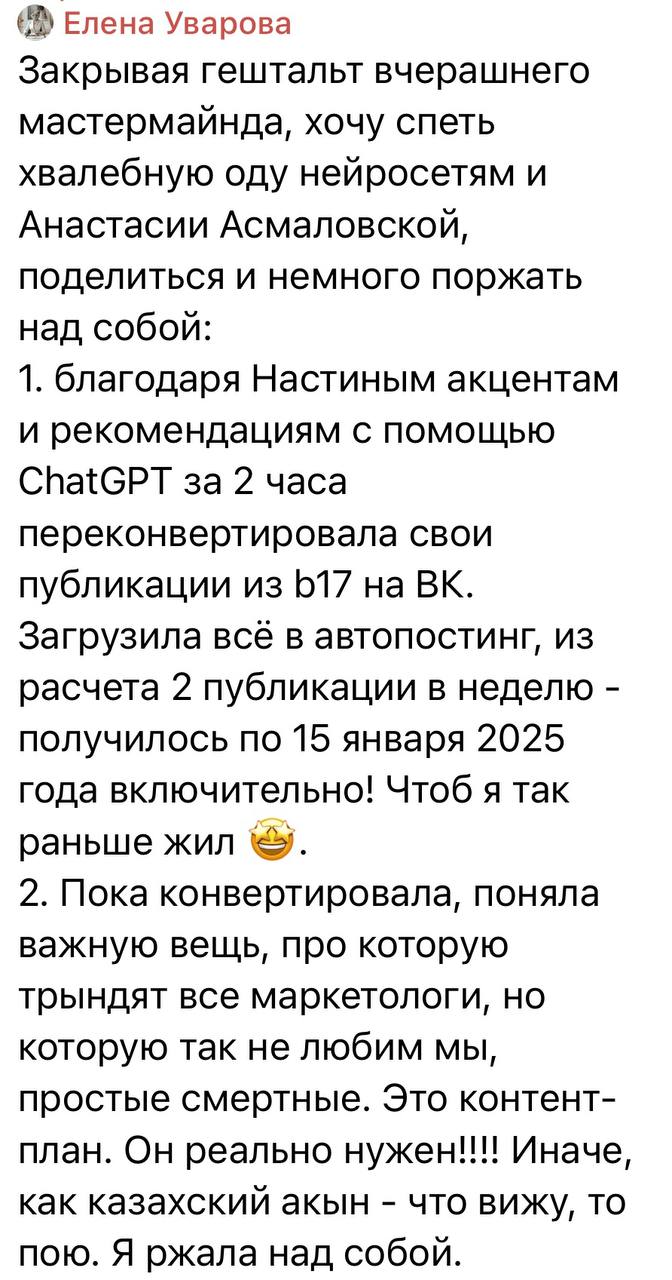 Я научу вас писать посты, создавать сторис и продумывать контентные воронки так, чтобы это занимало минимум времени, но приносило максимум результата.