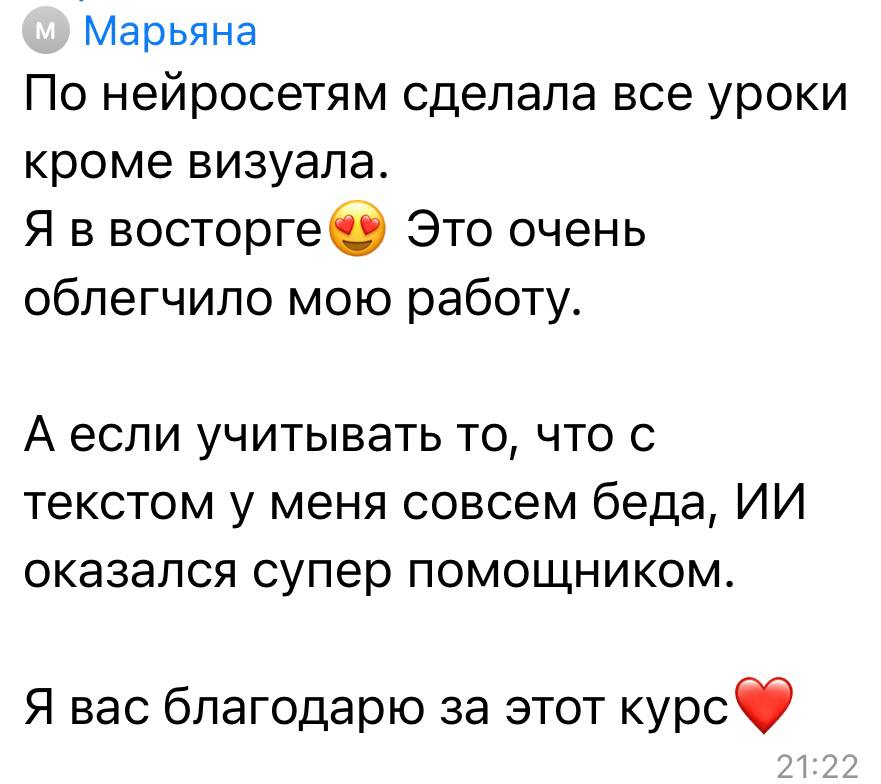 Курс "Нейросети для психологов и коучей" — это больше, чем просто обучение. Это манифест! Я открываю перед вами мир, где психология соединяется с технологиями, а время, потраченное на маркетинг и создание контента, можно сократить до минимума.